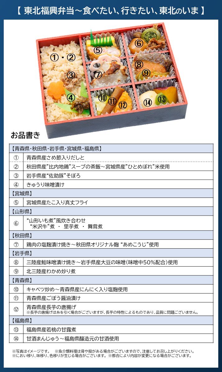 ・商品名:【駅弁】東北福興弁当~食べたい、行きたい、東北のいま(第14弾)(とうほくふっこうべんとう~たべたい、いきたい、とうほくのいま)