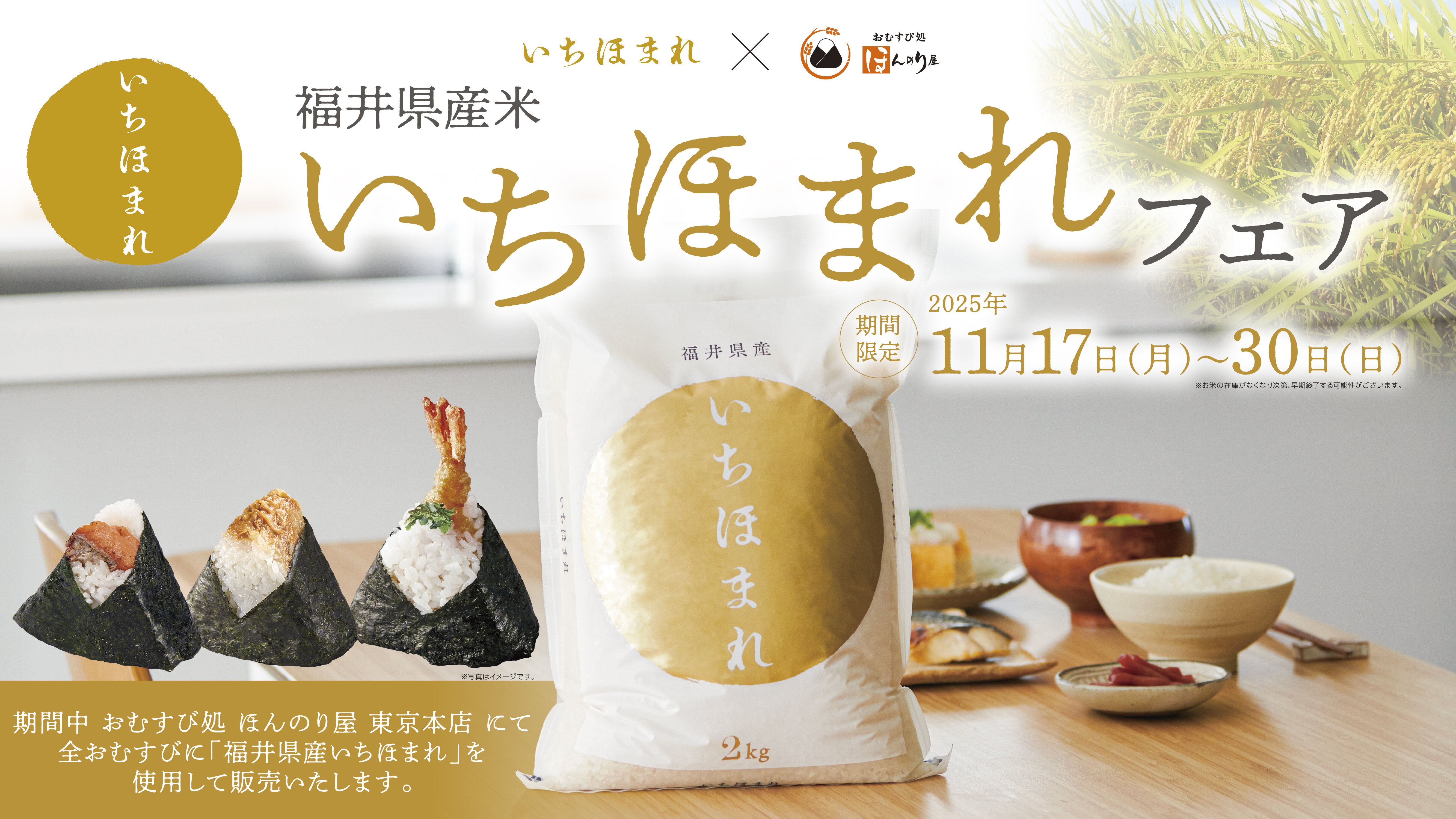 おむすび処 ほんのり屋東京本店で、福井県のお米「いちほまれ」を使用したおむすびを期間限定で販売いたします。