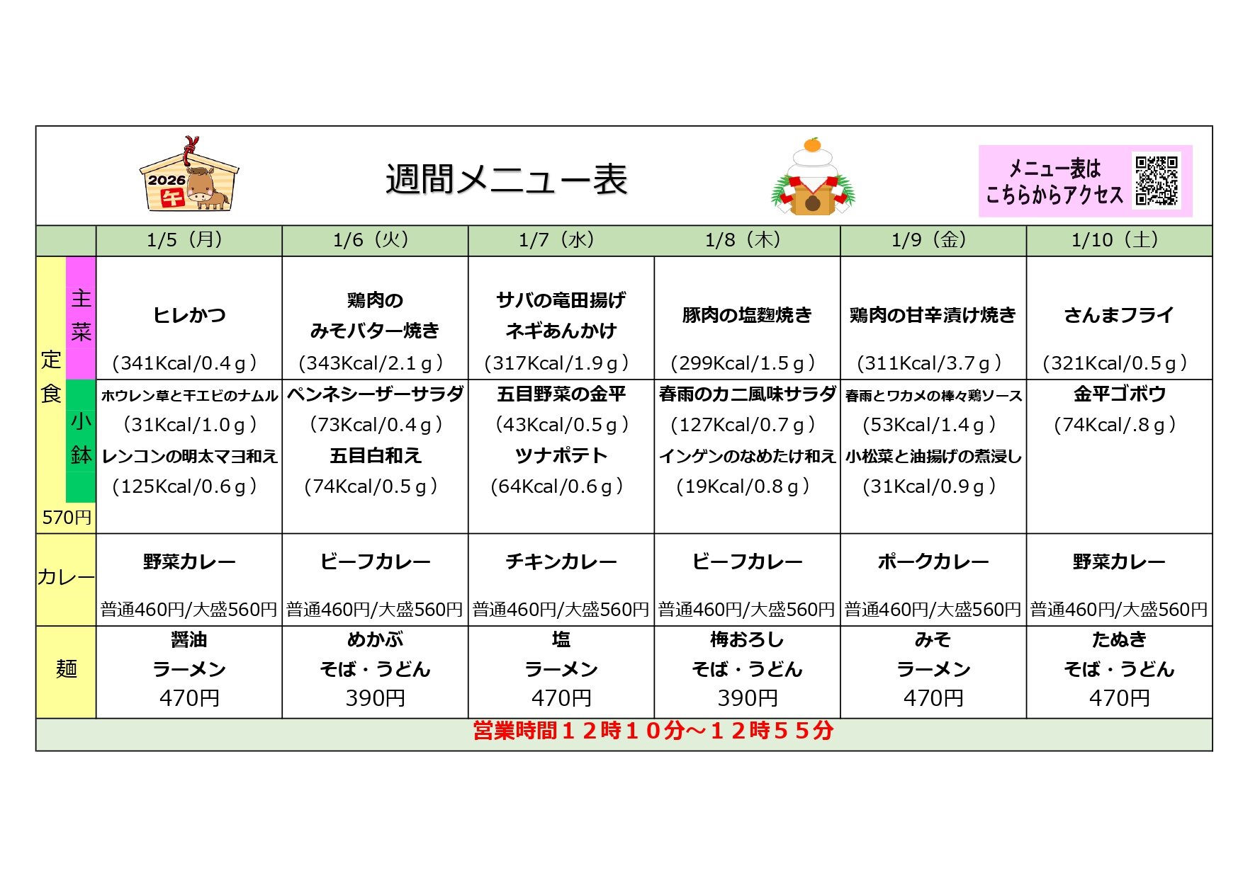 営業時間12:10~12:55 ※一般の方のご利用はできません。