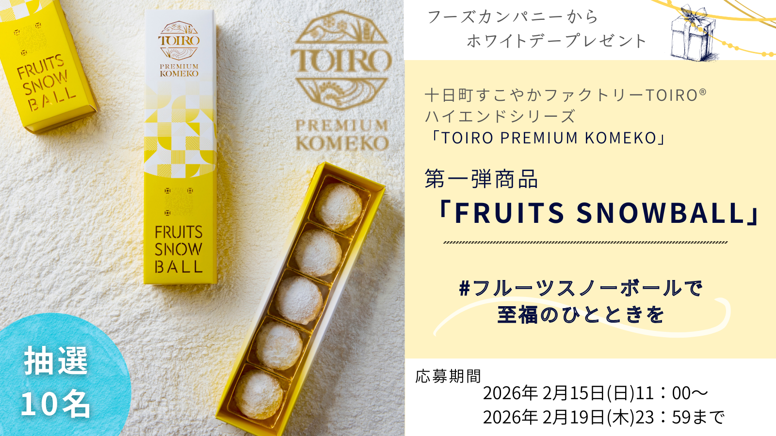 十日町すこやかファクトリー「TOIRO®」のハイエンドシリーズ「TOIRO PREMIUM KOMEKO」の「FRUITS SNOWBALL」を10名へプレゼント